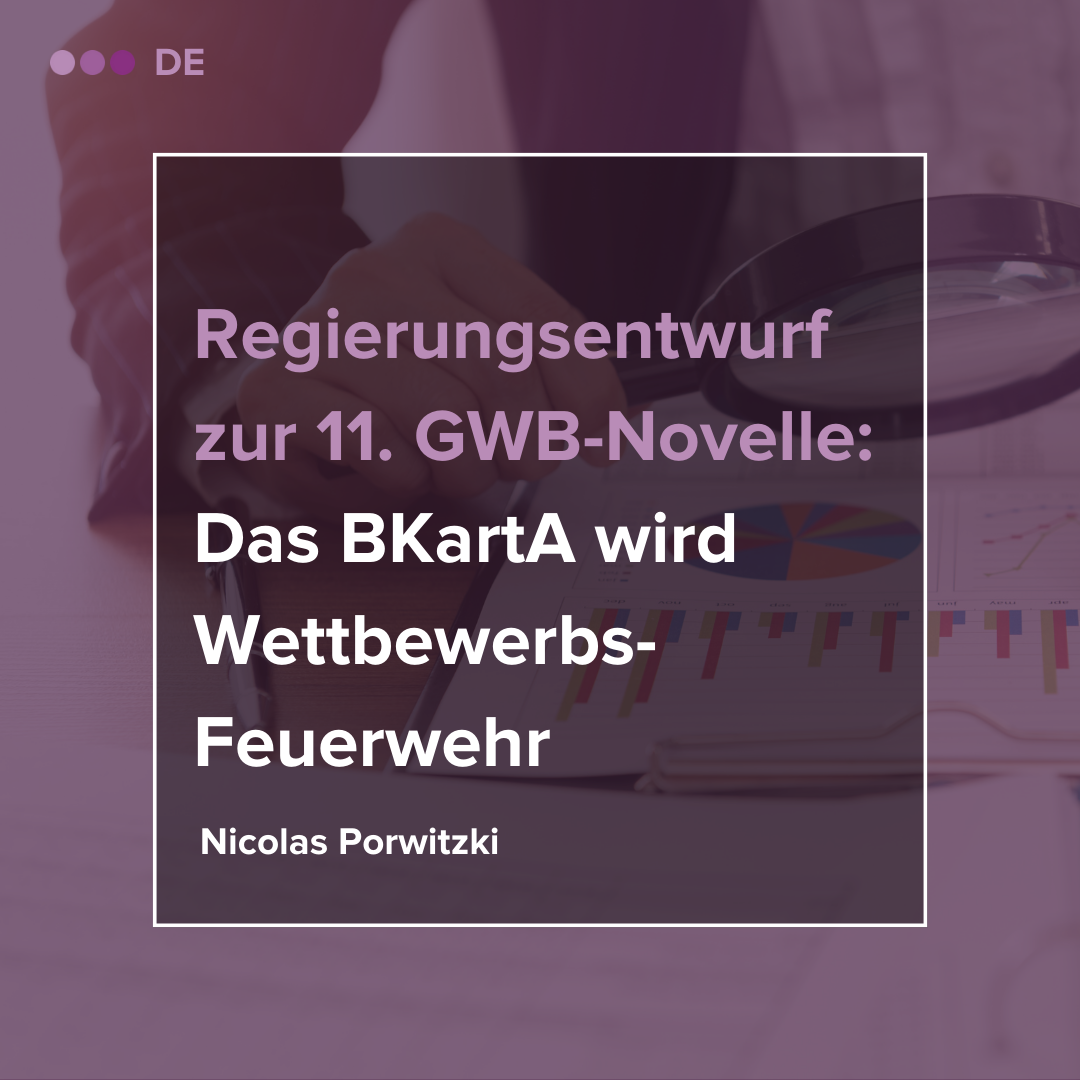 On 05.04.2023, the Federal Cabinet adopted the 11th GWB amendment. Colloquially known as the Competition Enforcement Act, the amendment provides for a far-reaching expansion of the powers of the Federal Cartel Office (Bundeskartellamt, BKartA). The centrepiece is the new powers of intervention in connection with sector enquiries modelled on the British Competition and Markets Authority (CMA). The government draft will now be forwarded to the Bundestag and Bundesrat. This two-part article provides an overview of the planned innovations and assesses the impact on practice. Part 1 of the article first deals with the new sector enquiry.