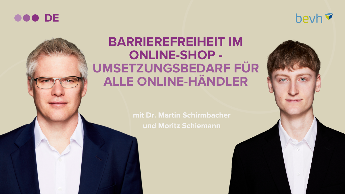 Mit dem Barrierefreiheitsgesetz wurde im Juli 2021 die EU-Richtlinie zur Barrierefreiheit (European Accessibility Act, kurz EAA) in nationales Recht überführt. Bis zum 28. Juni 2025 müssen private Wirtschaftsakteure bestimmte Produkte und Dienstleistungen barrierefrei anbieten. Die Pflichten, welche Hersteller, Händler, Importeure und Dienstleistungsanbieter treffen sind umfangreich. Neben den spezifischen Vorgaben für die betroffenen Produkte, steht vor allem der Begriff der elektronischen Dienstleistung im Fokus. Denn dieser betrifft vordergründig den E-Commerce-Bereich. Welche Auswirkungen dies auf Unternehmenswebseiten, den Online-Shop oder Online-Marktplätze hat, ist das zentrale Thema des Webinars zum Barrierefreiheitsstärkungsgesetz. Dabei werden insbesondere folgenden Fragen auf den Grund gegangen: Welche Auswirkungen hat das BFSG auf Produkte? Inwieweit ist der E-Commerce betroffen? Welche Auswirkungen hat das BFSG auf meinen Online-Shop? Welche Pflichten treffen den Online-Händler? Was bedeutet Barrierefreiheit für Online-Marktplätze?
